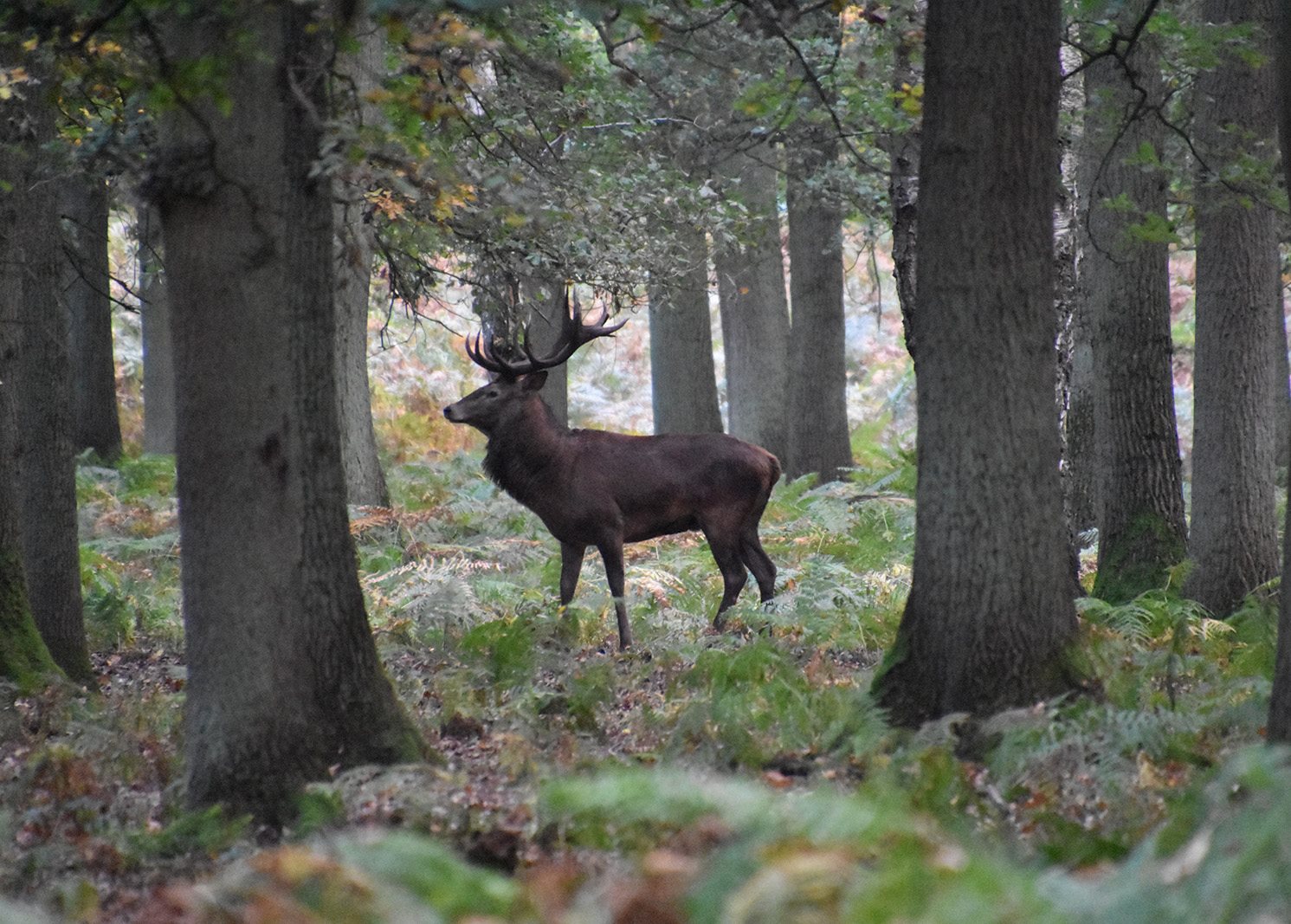 Abends begleiteten wir nun Kunde und Berufsjäger auf den Ansitz. Nach einigen Minuten begannen im näheren Umfeld mindesten 3 Hirsche zu melden! Noch ehe der Berufsjäger den Hirschruf auspacken konnte, folgte auf das Röhren des Hirsches eine tiefe Hustenattacke unseres Kunden. Unmittelbar darauf meldete einer Hirsche. Und so ging es weiter, auf jedes Melden des Hirsches folgte eine unfreiwillige Hustenattacke, die den Hirsch jedoch immer näherzustehen ließ. Gut konnten wir beobachten wie dieser mit seinem Brunftrudel durch den Bestand auf uns zu zog. Nach etwa 20 Minuten endete dieses unwirkliche akustische Schauspiel, als der Hirsch die Freifläche betrat. Mit sauberer Kugel sackte er an Ort und Stelle zusammen! Der Lebenshirsch war es nicht, dafür aber sicherlich ein Lebens- Hirscherlebnis! Waidmannsheil!
